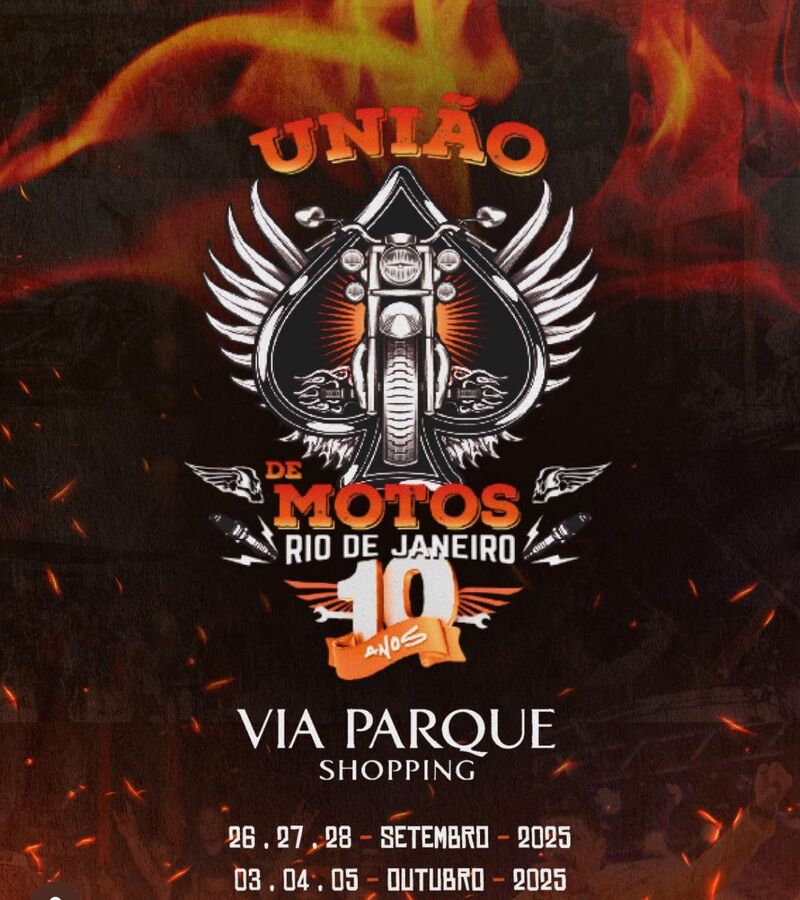 Neste final de semana, de sexta-feira (03) à domingo (05), acontece a última edição do encontro de motos da União de Motos em comemoração aos 10 anos de existência do grupo. O evento promete, além das motocicletas, shows de rock, globo da morte, tirolesa, área kids, opções gastronômicas e muito mais diversão para os participantes. O encontro é gratuito e acontece no estacionamento do Shopping Via Parque, e quem estiver de moto, também estará isento de pagar o estacionamento.
