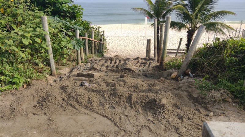 Na última terça-feira (09/04), equipes do Subgrupamento de Operações de Praia (SGOP) da Guarda Municipal do Rio (GM-Rio) uniram forças com a Subprefeitura da Barra da Tijuca para desmantelar uma estrutura irregular em construção na Av. Lúcio Costa, na altura do Posto 3, na Praia da Barra da Tijuca. A intervenção, denunciada por moradores, ocorreu devido à constatação de uma rampa de alvenaria sendo erguida ilegalmente junto à vegetação, próximo a um quiosque, em área de proteção ambiental.